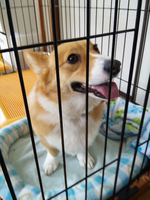 友人の家にて、大好きなコーギーと戯れる。