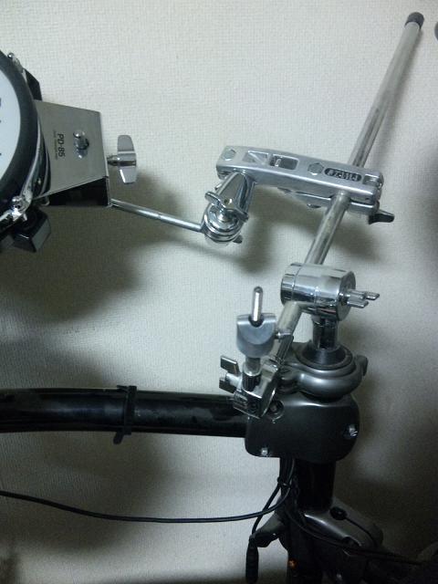 ライドシンバルが付いてるスタンドkら強引に枝分かれさせて取りつけております。